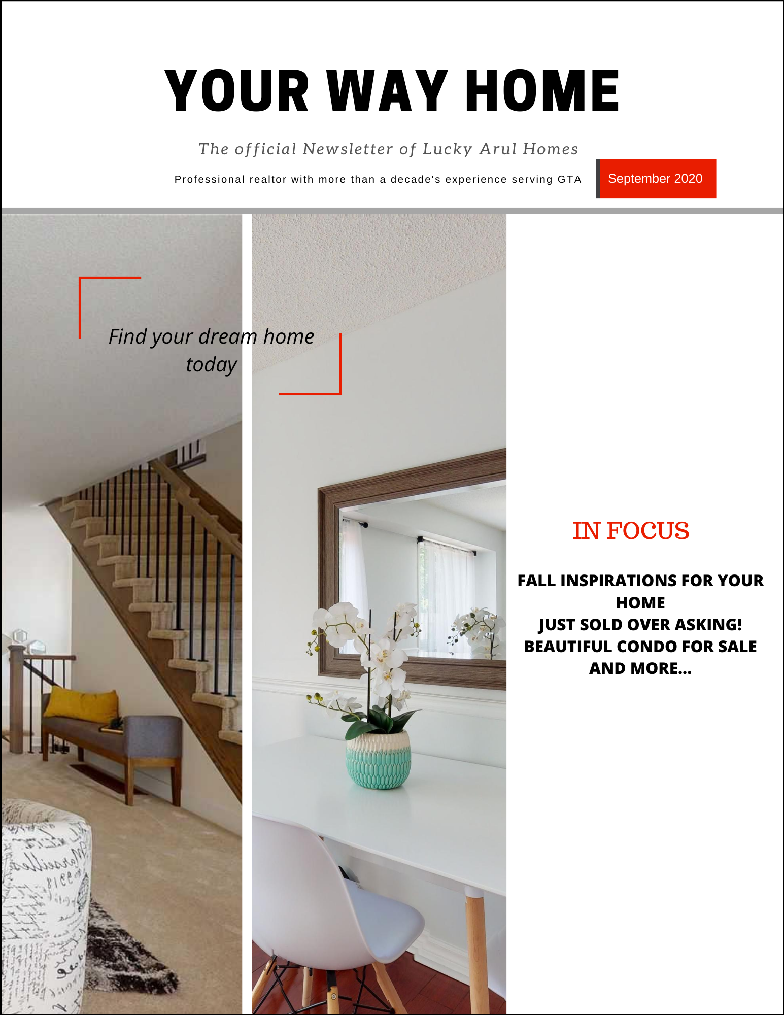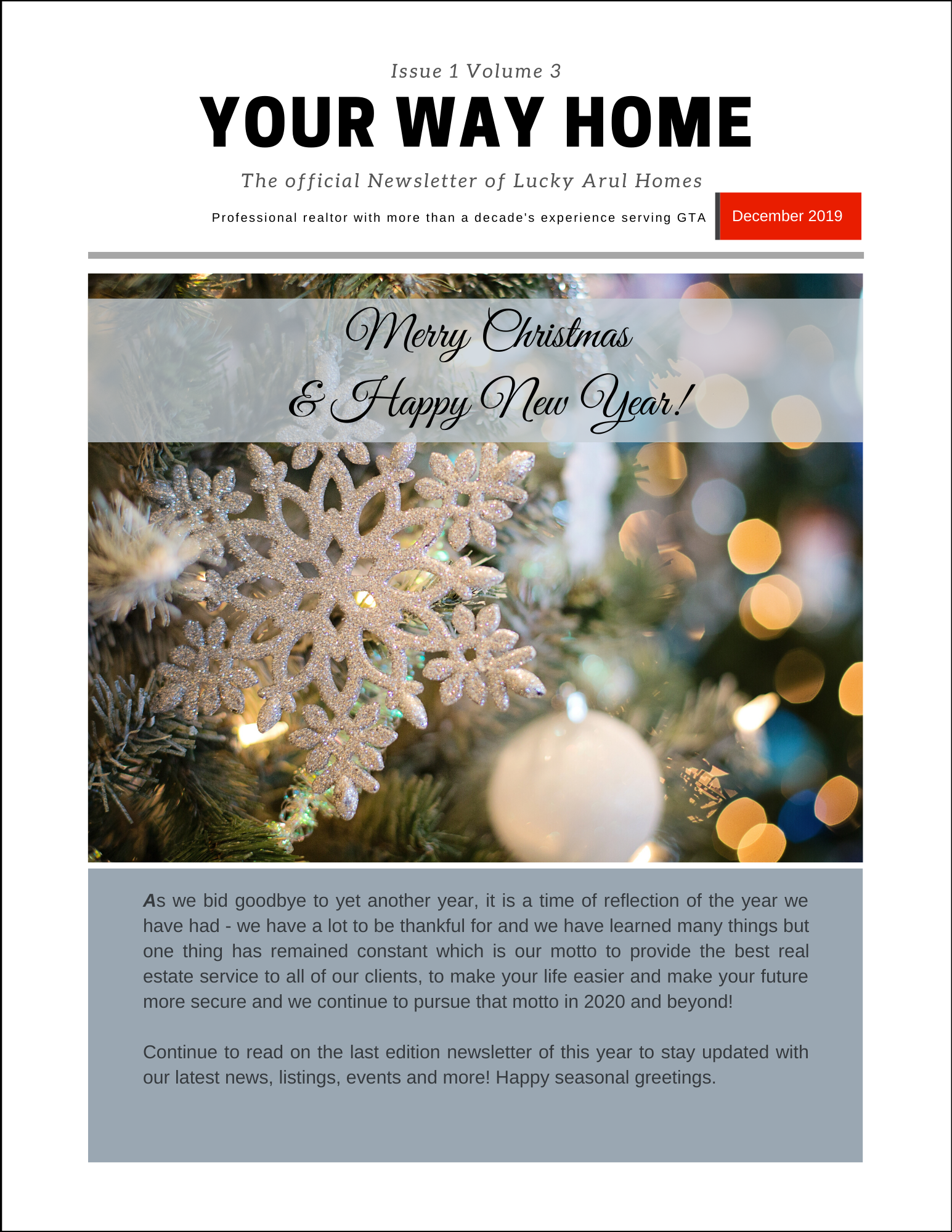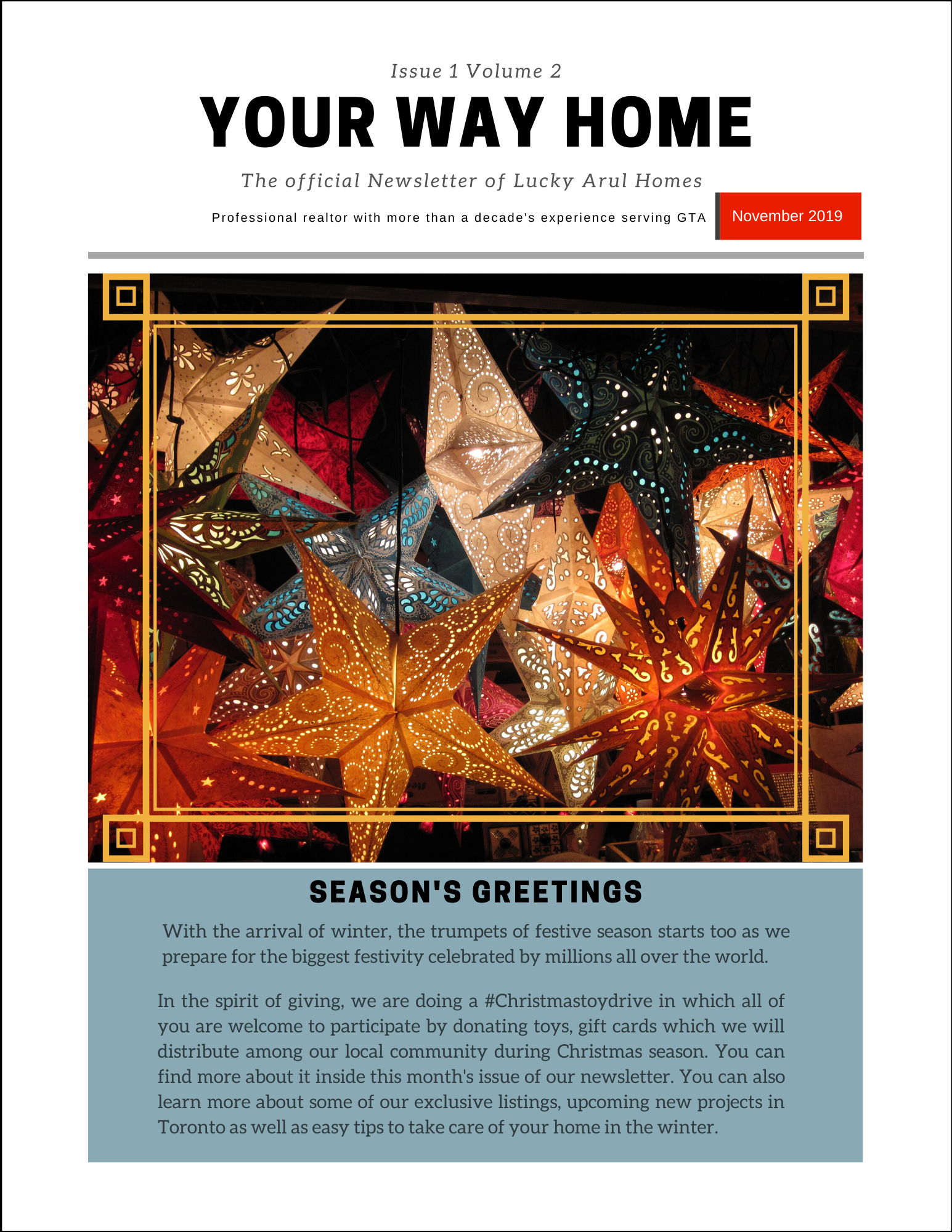 Arul's Newsletter – Your Way Home published monthly keeps you up to date on the latest real estate happenings such as new and exclusive listings, real estate market update, current events and exciting offers. It also gives you helpful insight and expert advice on buying or selling real estate in GTA. Subscribe to our newsletter to stay tuned.